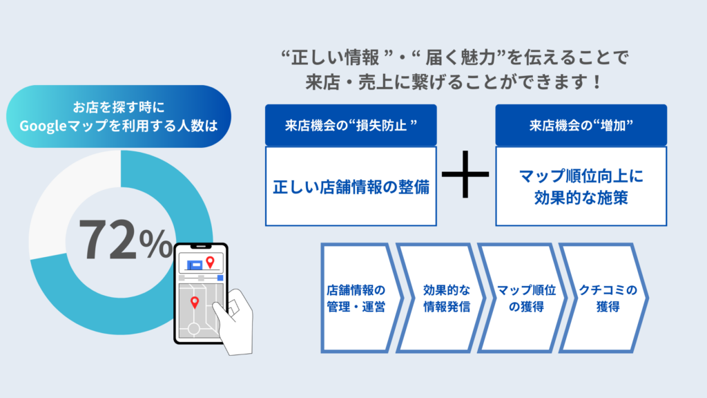 そのため、MEO対策を行うことで、検索した人に見つけてもらいやすくなり、来店にもつながりやすくなります。